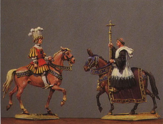 Сначала я выбираю направление освещения, которое я дам своей фигурке, и буду придерживаться его до конца, потому что освещение, идущее со всех сторон - скажем, от лица, - снимает любое облегчение. Однако искусство рисования на оловянной фигурке заключается именно в том, чтобы дать ей как можно больше. Когда мой выбор сделан, я кладу свои цвета, без разбавителя, по зонам света (чистый, средний, тень); Я работаю с небольшим количеством краски, чтобы избежать каких-либо мелких деталей. Чистой кистью я приступаю с небольшими штрихами к цветовому градиенту; когда я закончил, я разглаживаю свою краску длинноволосой кистью, чтобы она высохла, хорошо потянув, не оставляя никаких следов. Это сглаживание может вызвать переполнение неокрашенной детали: в этом случае я очищаю ее чистой кистью, смоченной в уайт-спирите, а затем вытираю между пальцами. Этот процесс действителен для всех частей фигурки; укажем, что я всегда начинаю с лица для пешей фигурки и лошади для наездника. После нескольких дней высыхания (от 5 до 7 дней, в зависимости от цвета) я перехожу к финишу, который придаст окончательную форму фигурке. Сгладив краску, я, очевидно, уменьшил контрасты, которые существовали во время градиентов. Поэтому я выделю свет и тени мелкими мазками краски, которые будут ухудшаться с помощью использованной кисти, из-за чего более жесткие волосы позволяют мне распределять краску более легко и без следов. Я повторяю эту операцию столько раз, сколько необходимо. Мой свет [блики]получается с использованием не совсем белого желтого аврорового или желтой Нааполитанской, тени умбры жженой или пурпурной марены [фиолетовой пурпурной] красок, что придает больше яркости прозрачному соседнему желтому. Общий рельеф фигурки будет подчеркиваться подчеркнутыми мною тенями после высыхания фигурки битумом Vibert [?]. Эти тени должны быть четкими и обязательно сопоставлять освещенную область. Я не буду вдаваться в подробности: именно в различиях мы узнаем «лапу» художника, и каждый волен выражать себя в соответствии со своей индивидуальностью.